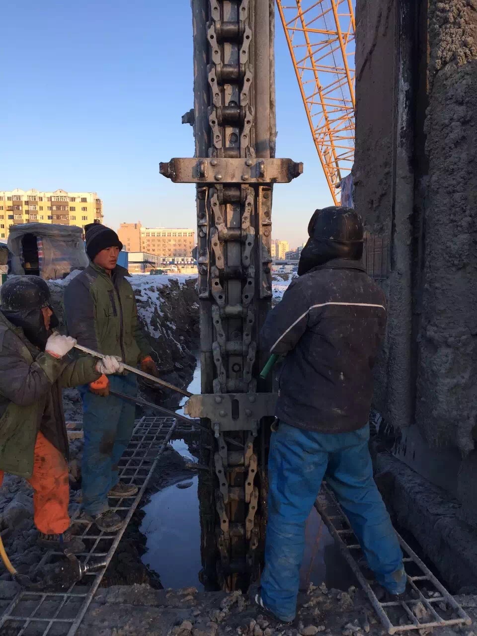 哈爾濱棚戶區(qū)改造項目位于哈爾濱道外區(qū)樺樹街地鐵旁,項目總方量13753立方米,墻厚800毫米,墻深40米,地質(zhì)為粉砂層,圓礫層,入強風(fēng)化層,于2016年11月份進場施工,正值哈爾濱最冷季節(jié),零下二十多度氣溫,施工難度大,靠著過硬的施工團隊和先進的原裝施工設(shè)備,最終圓滿按期保質(zhì)保量完成施工任務(wù)。