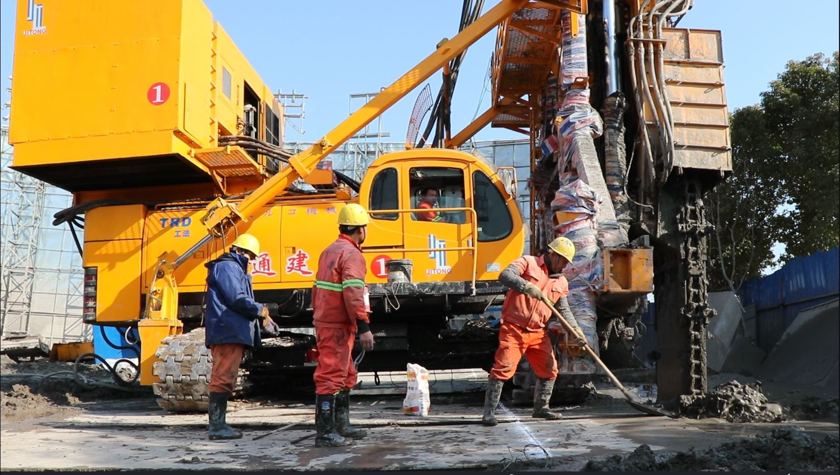 本項目地質條件非常復雜,施工難度極大,地下-56至-58米是鵝卵石層、-58至-60米左右是強風化層、-60米以下是中風化層,項目設計TRD水泥土攪拌墻施工深度為61.5米。這是迄今為止TRD工法施工史上少有的高難度項目。