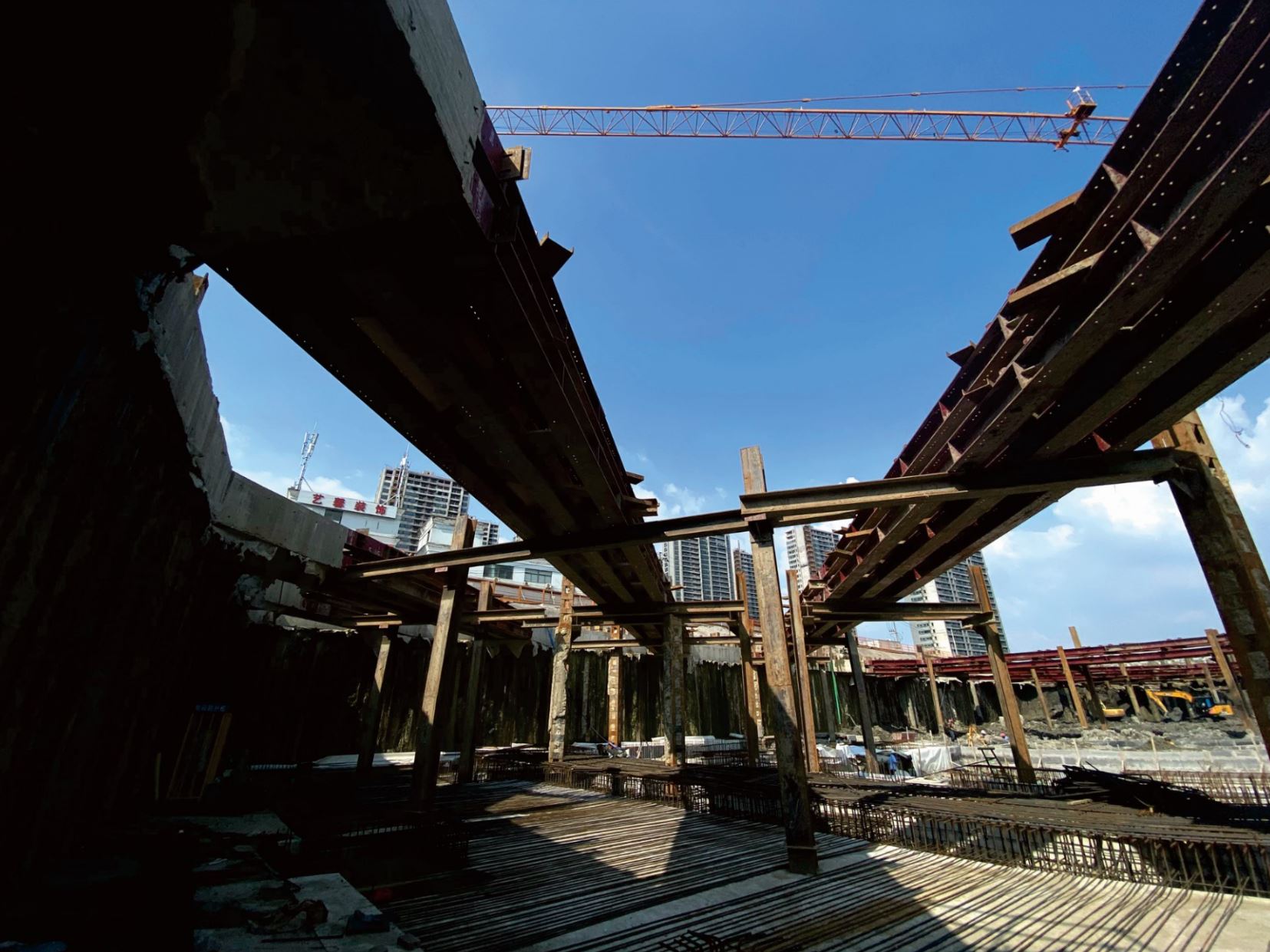 項目西側采用基坑圍護結構采用SMW工法+一道雙拼支撐的圍護方式,東側臨近地鐵,采用TRD工法做止水帷幕,采用MJS高壓旋噴工法做重力式擋墻和接頭處加強。