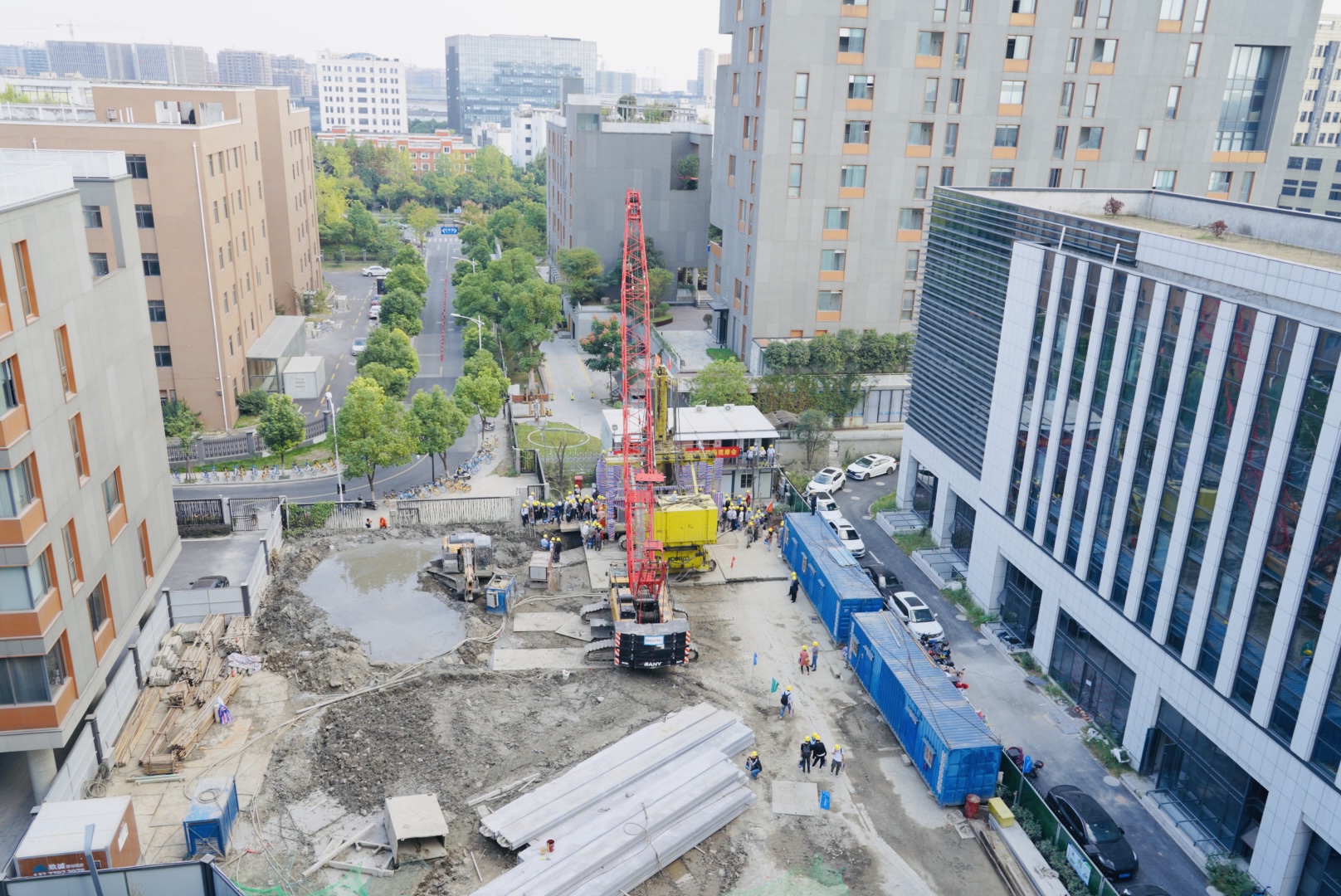擬建項目位于杭州市江干區九堡鎮勝康街68號,浙江華鐵建筑安全科技股份有限公司園區內。采用渠式切割裝配式地下連續墻TAD工法(700厚渠式切割水泥土連續墻內插900*400矩形混凝土預制板材)結合一道型鋼組合式內支撐,采用渠式切割水泥土連續墻作為止水帷幕,臨邊深坑位置設置被動區加固。