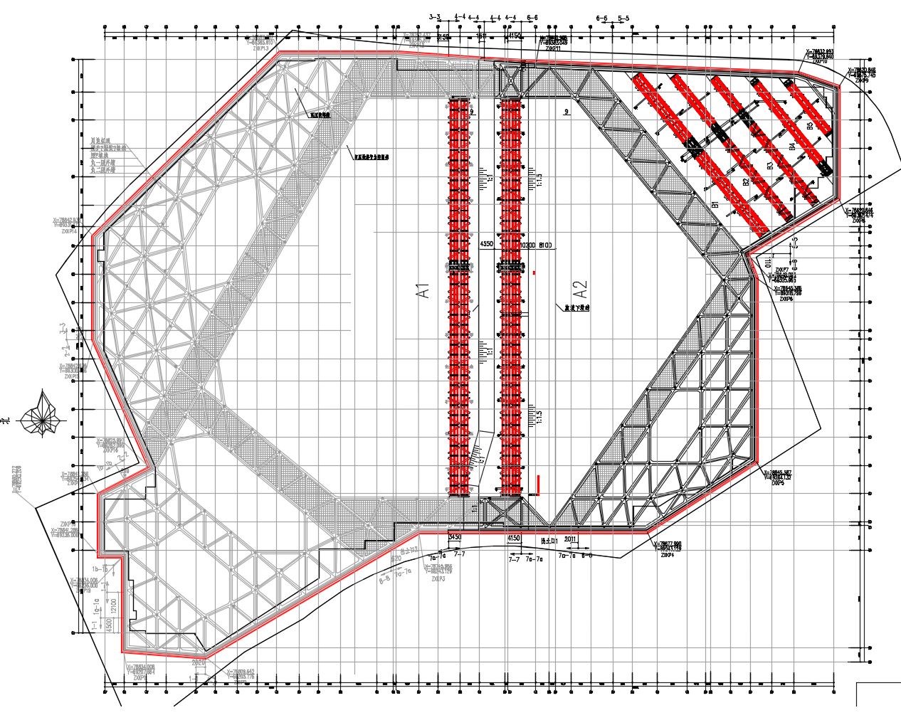 (1) 為便于識別和管理,將鋼構件吊裝根據總包挖土計劃劃分區域,鋼結構吊裝按吊機作業范圍進行劃分。