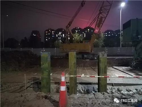 TRD工法(Trench-Cutting & Re-mixing Deep Wall Method),又稱等厚度水泥土地下連續墻工法,其基本原理是利用鏈鋸式刀具箱豎直插入地層中,然后作水平橫向運動,同時由鏈條帶動刀具作上下的回轉運動,攪拌混合原土并灌入水泥漿,形成一定強度和厚度的墻。