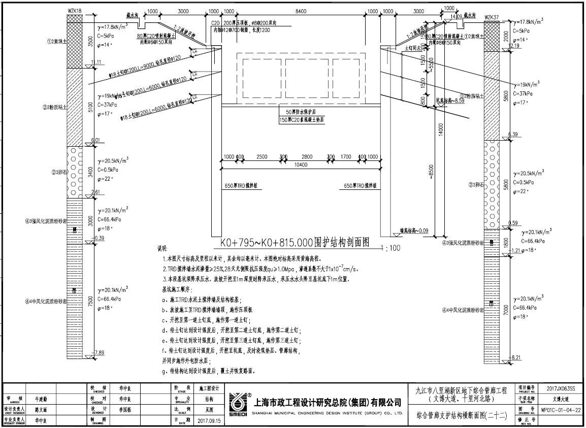 九江八里湖新區地下綜合管廊改造項目是九江市八里湖新區首個正式落地的PPP項目,也是省、市PPP示范項目,建成后將是九江市區第一條標準的地下綜合管廊。本項目由5號TRD班組施工,在2017年12月2號進場,2018年10月28號TRD施工結束??偡搅咳f七千方,型鋼五千噸。