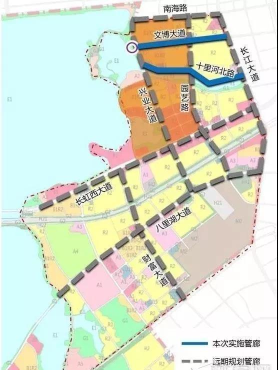項目位于八里湖中央商務區內,規劃沿十里河北路北側及文博大道中央綠化帶內建設綜合管廊,全長約2.8公里,工程投資2.8億元。項目分兩部分實施,其中十里河北路綜合管廊全長約1.5公里,主要布置在北側人行道外側區域,為兩倉斷面,分為電力倉及綜合倉。主要入廊管線包括:110KV以上高壓電纜及35KV、10KV中低壓電纜、弱電、供水及中水(預留)。文博大道綜合管廊全長約1.3公里,主要布置在中間綠化帶內,為倉斷面,分別為電力倉、綜合倉及燃氣倉,主要入廊管線為除雨污水外其他全部市政管線。