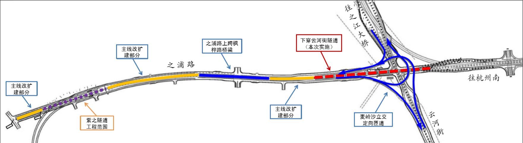 快速路網的最西一縱將基本成型,紫之隧道——之浦路 一線往彩虹快速路、杭州南樞紐轉彎均可形成無信號干